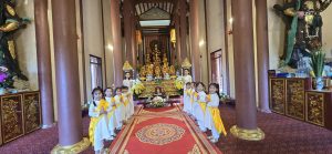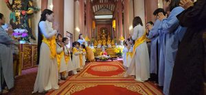 Hình ảnh những tăng ni cùng phật tử tụng kinh, bái sám trong tiếng chuông chùa vang vọng, ánh nến lung linh và hương trầm lan tỏa đã mang đến một không gian linh thiêng, xúc động – nơi mỗi người được lắng lại để tri ân và hướng thiện.